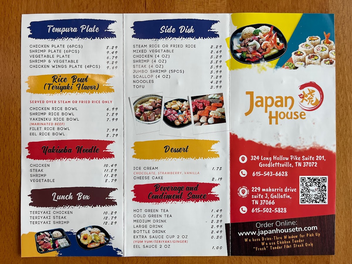At Japan House II, located at 229 Maharris Dr Suite J, Gallatin, TN 37066, the menu is filled with a variety of flavorful options that cater to all kinds of tastes. Starting with their Lunch Boxes, you can enjoy a fulfilling meal with choices such as Lunch Box Shrimp, Lunch Box Steak, and Lunch Box Chicken, offering a great value for a quick yet satisfying lunch. For those looking for something light to drink, they offer a selection of Bottled Diet Pepsi, Bottled Crush Orange, Hot Green Tea, Bottled Dr Pepper, and Bottled Sprite, which pair perfectly with your meal.