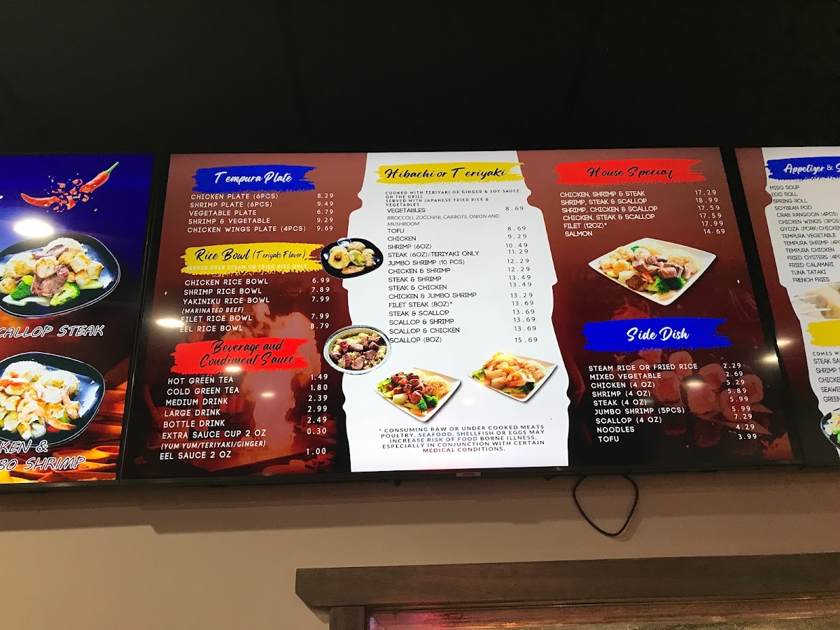 The Hibachi menu is another highlight, with dishes like H - Scallop (8 Oz), H - Tofu, and H - Salmon, as well as combos such as H - Scallop & Shrimp and H - Steak & Shrimp, making for a deliciously grilled experience.